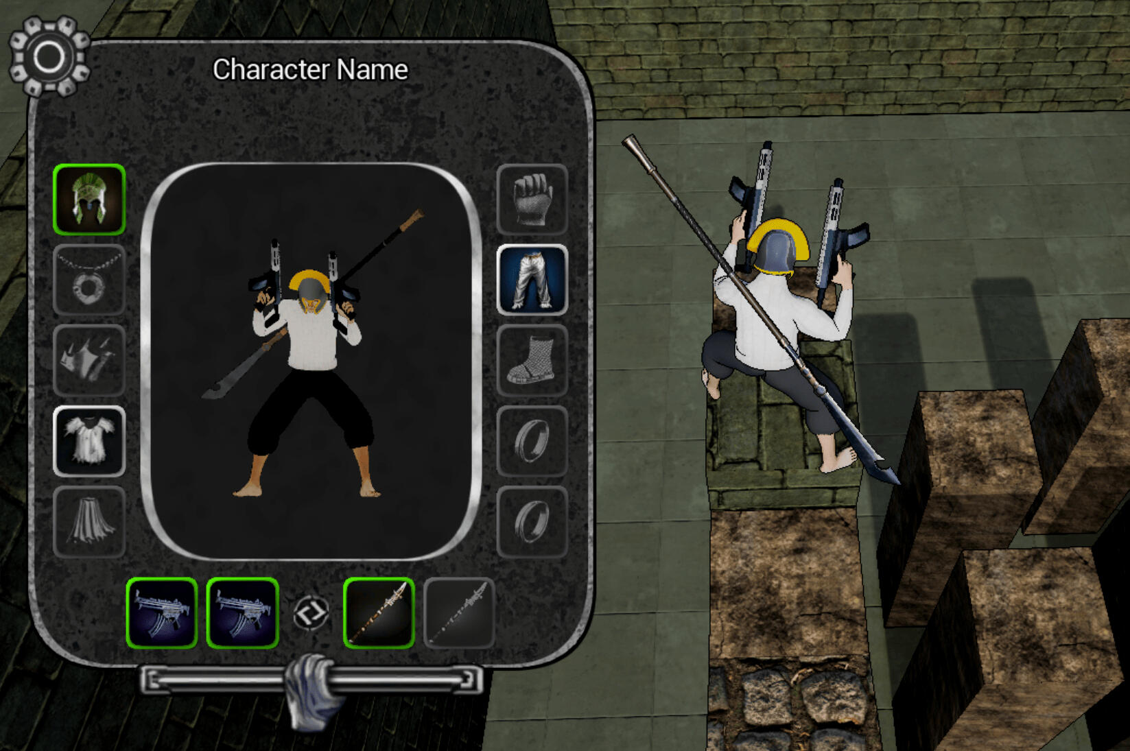 Modular Character System with separate visuals for 7 Armor Slots and up to 4 Weapons. 3D models were made in Blender.